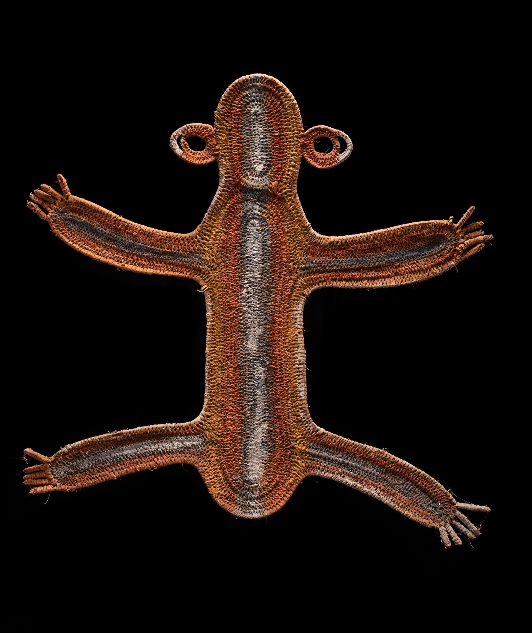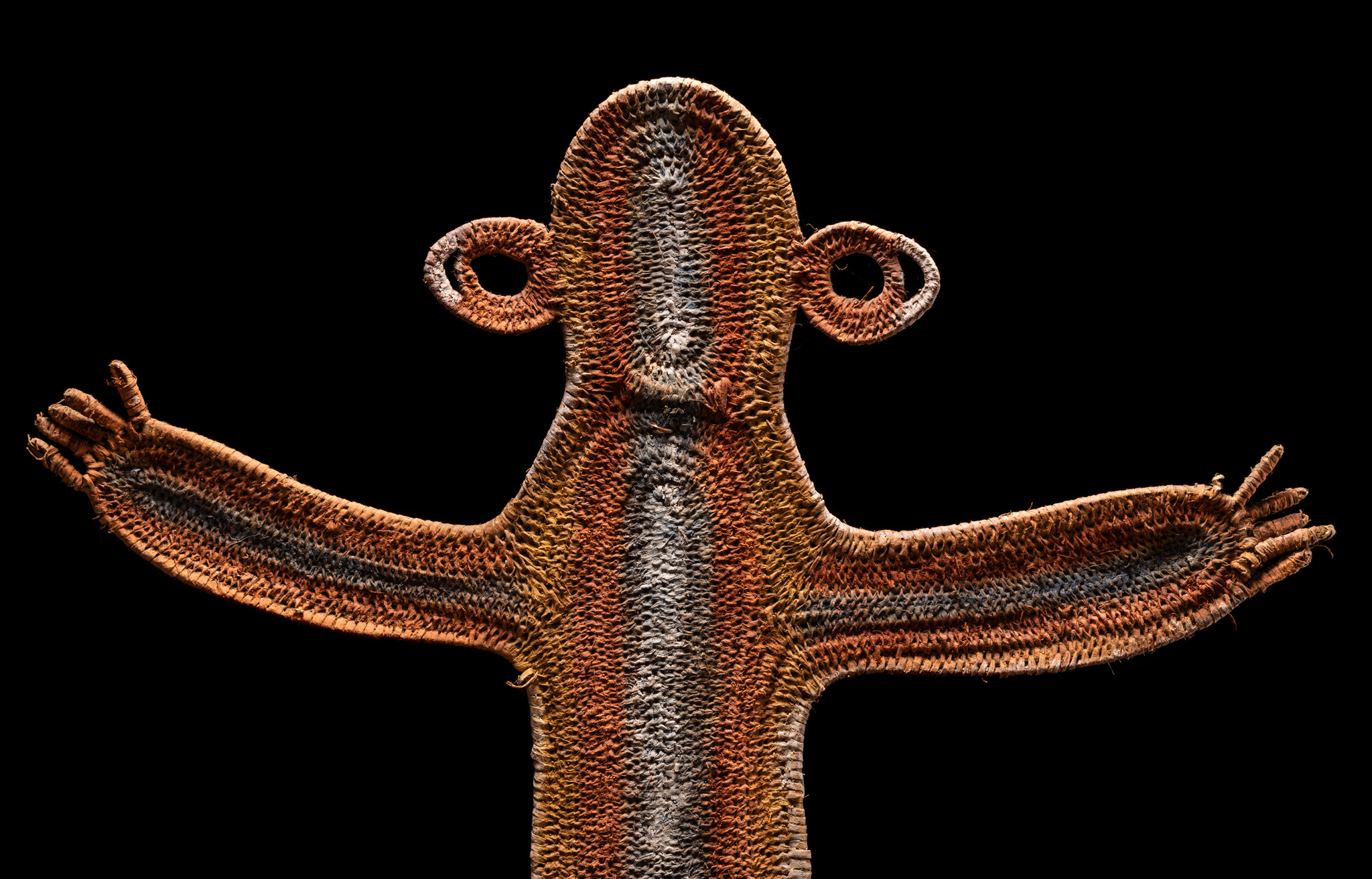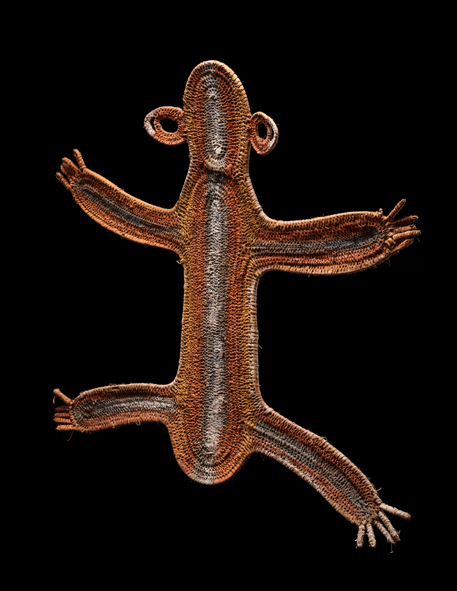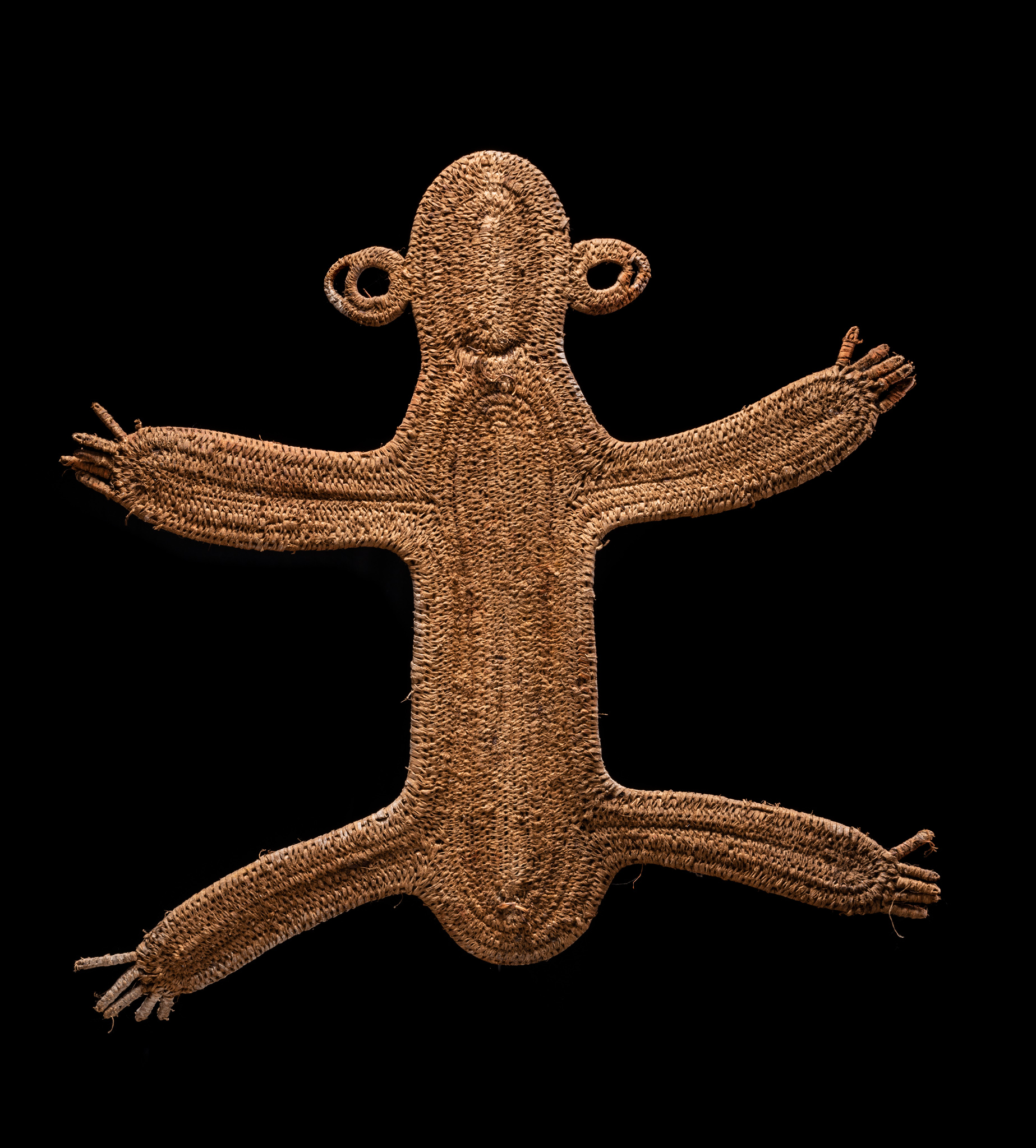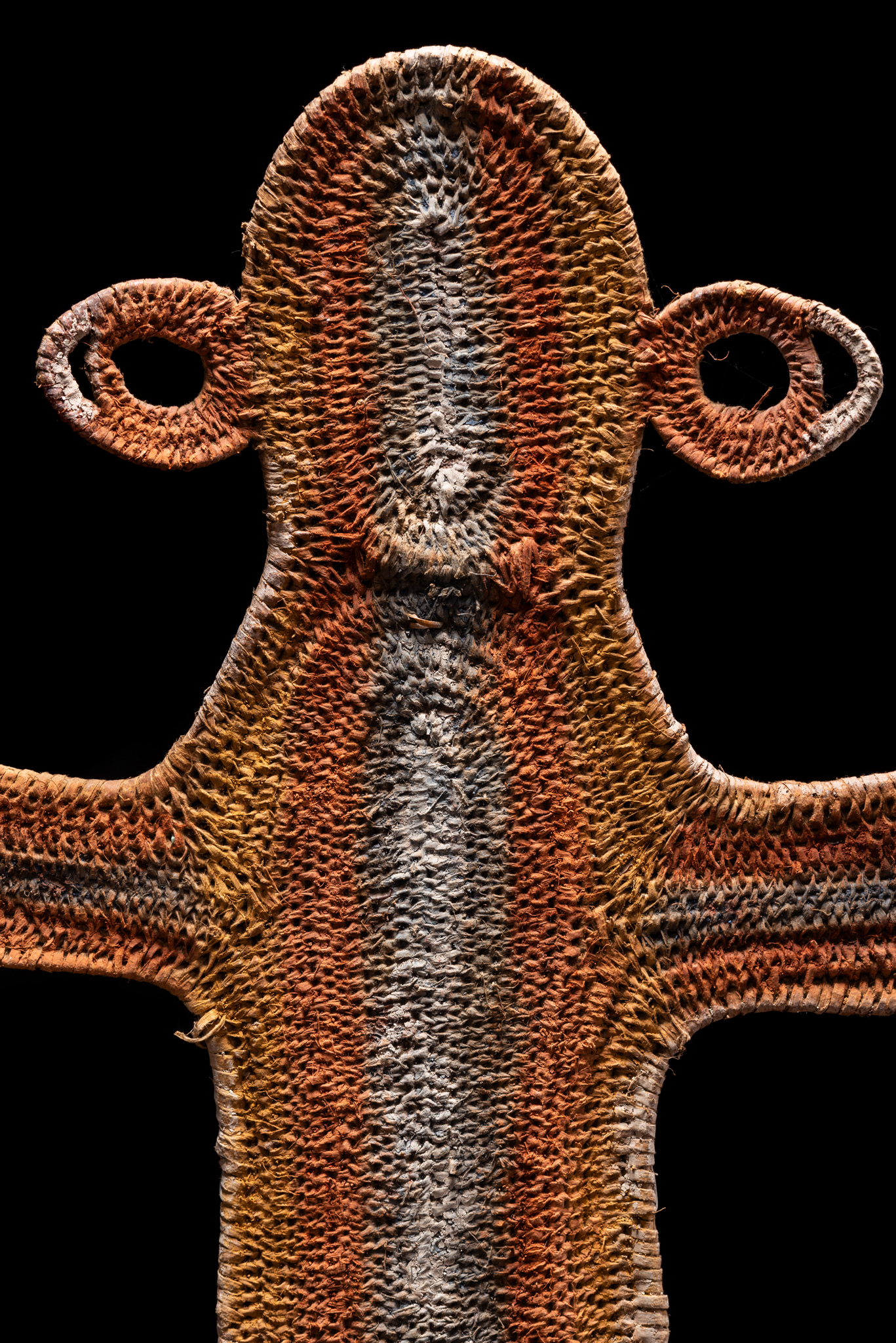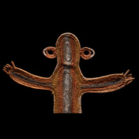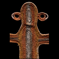 Timbuwara This is an early Timbuwara from the Pangia area in the southern highlands of New Guinea. It comes from the collection of Todd Barlin, Sydney. According to Anthony Meyer, the information we have about these abstract figures is rather mixed. On the one hand, they are supposed to have been attached to the entrance of the men's house as a guardian spirit, but on the other hand, there are indications that they were carried on the head during fertility rites. Third, they are said to have embodied the deceased wife of the man and been kept in the men's house so that friends and relatives could pay you their respects. Ca 1960s or 1970s, 88 cm high, 94 cm wide.